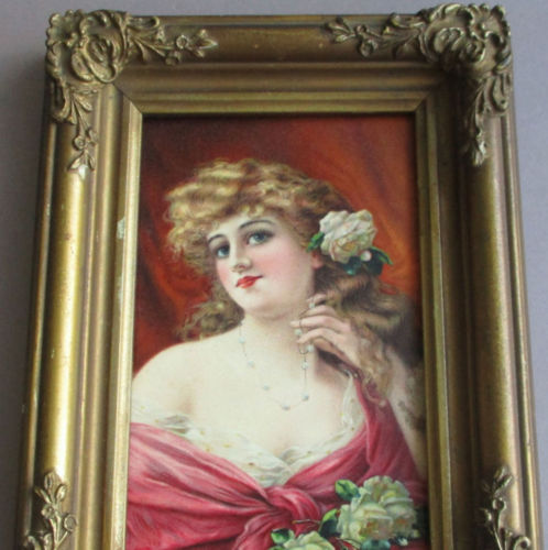 Title (ebay affiliate link): Antique c1900 Petite GILT Wood + Gesso Frame CHROMO Portrait LADY w ROSES * Asti