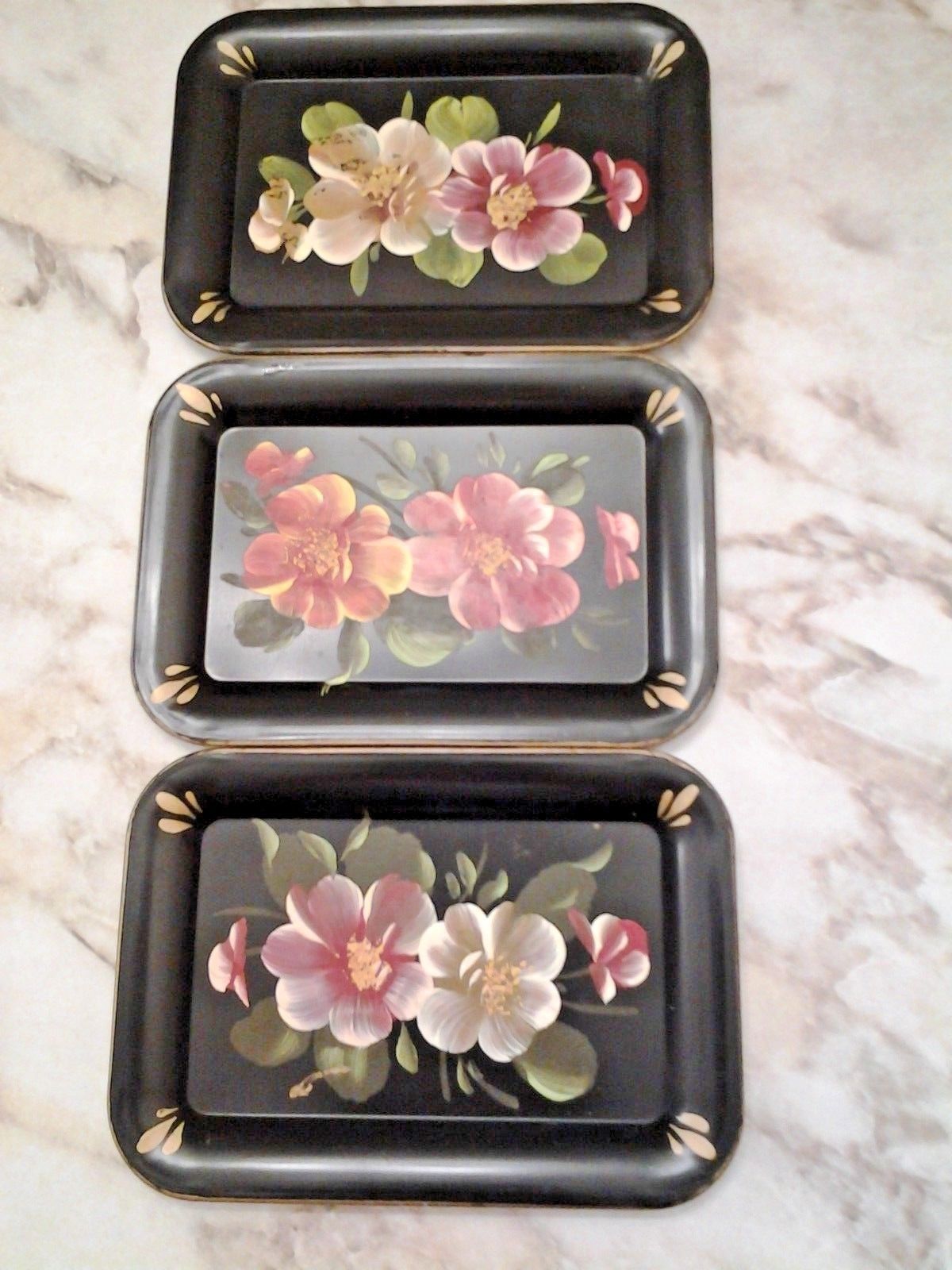 Title (ebay affiliate link): (3) Vintage Tole Metal Trays Hand Painted Floral Designs 4.5" X 6.5"