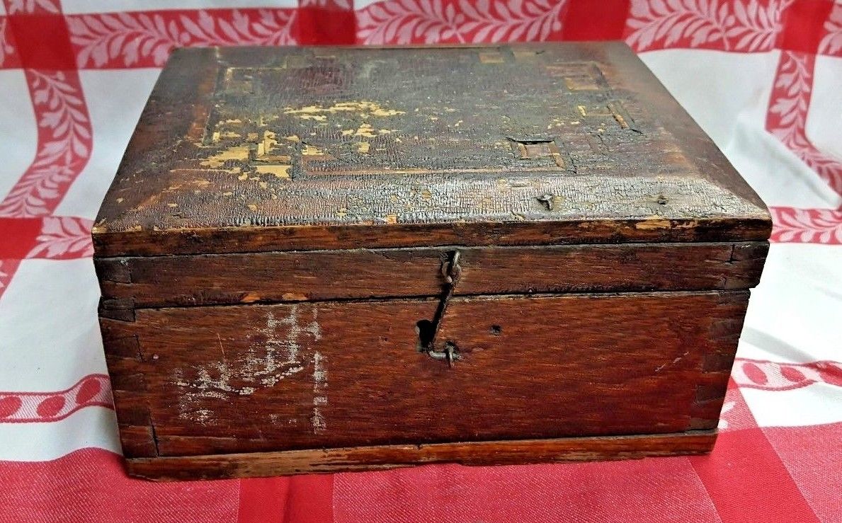 Antique Wooden Document Box, Dove Tailed corners