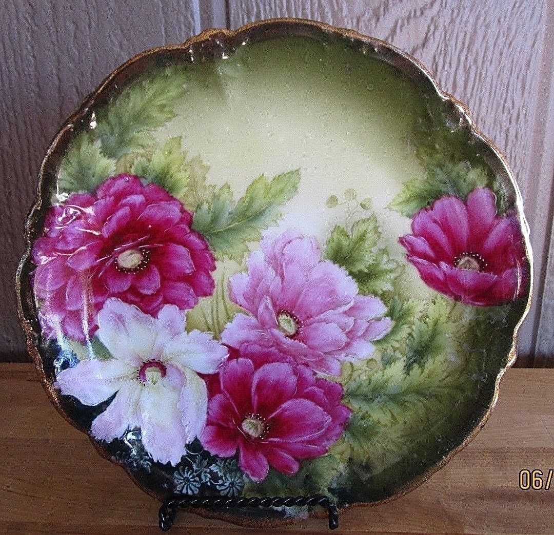 ANTIQUE PORCELAIN FLORAL HAND PAINTED PLATE 8"