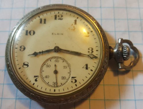 Antique 1912 Men''s Elgin Pocket Watch 12s 3 o''clock Wind for cleaning as is