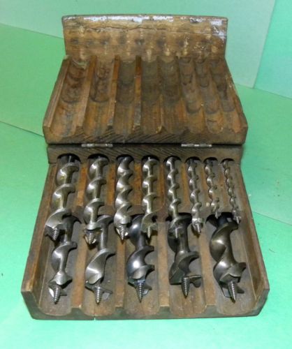 Title (ebay affiliate link): Vintage 13 drills - Auger Wood Drill Bits in Wood Box 4/16''s thru 16/16''s