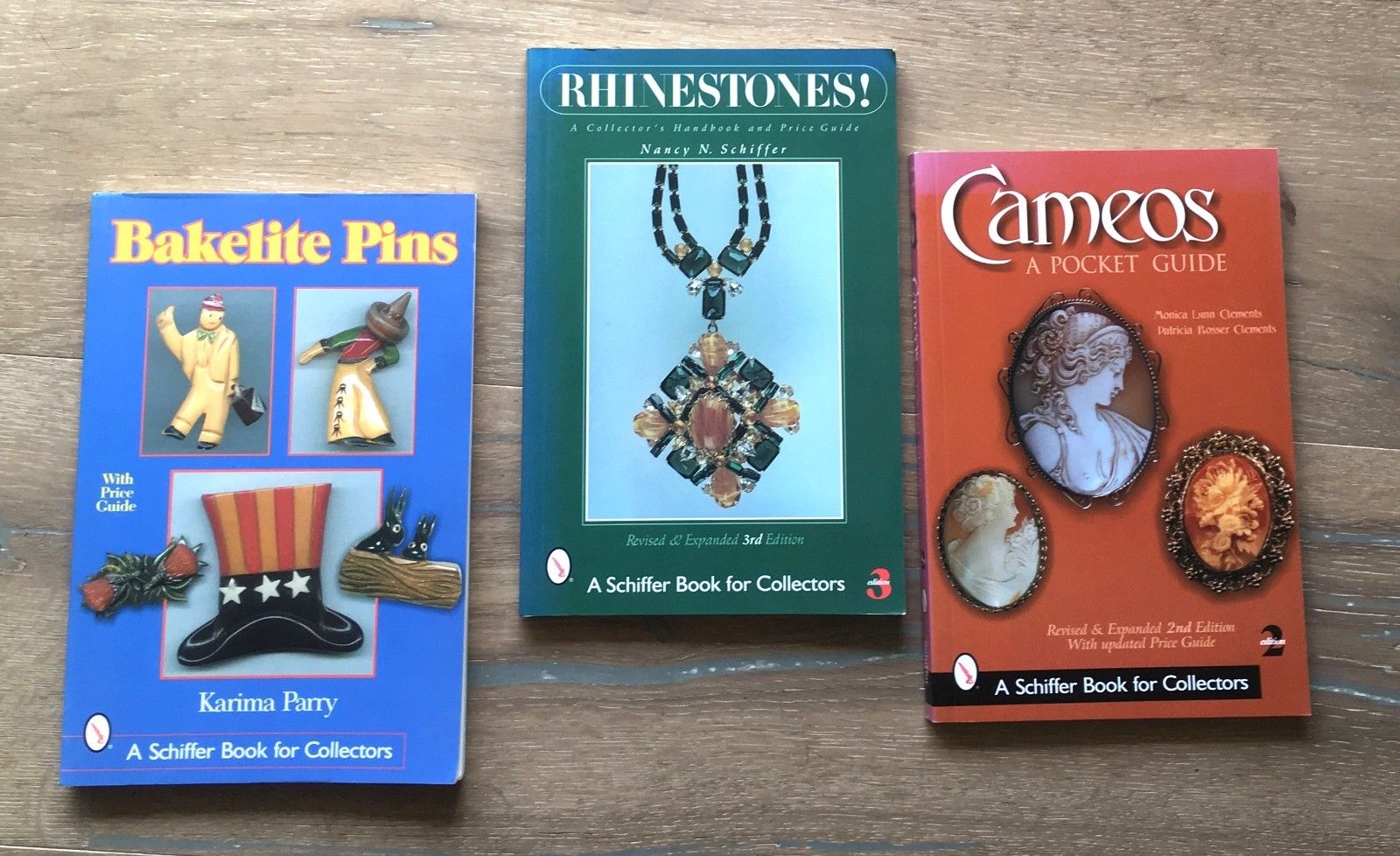 Lot of 3 vintage jewelry books Rhinestones, Bakelite pins, Cameos
