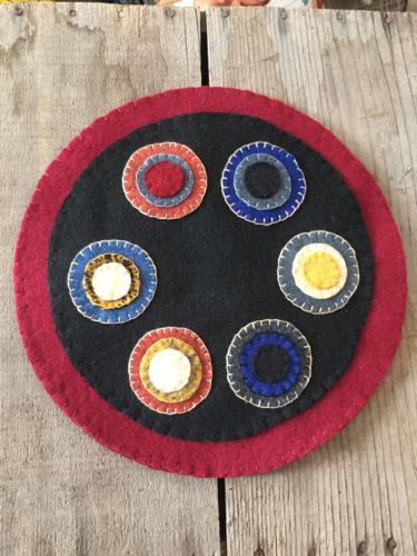 Title (ebay affiliate link): Wool Felt Penny Rug. Handmade Original. Pennys! Candle Mat.