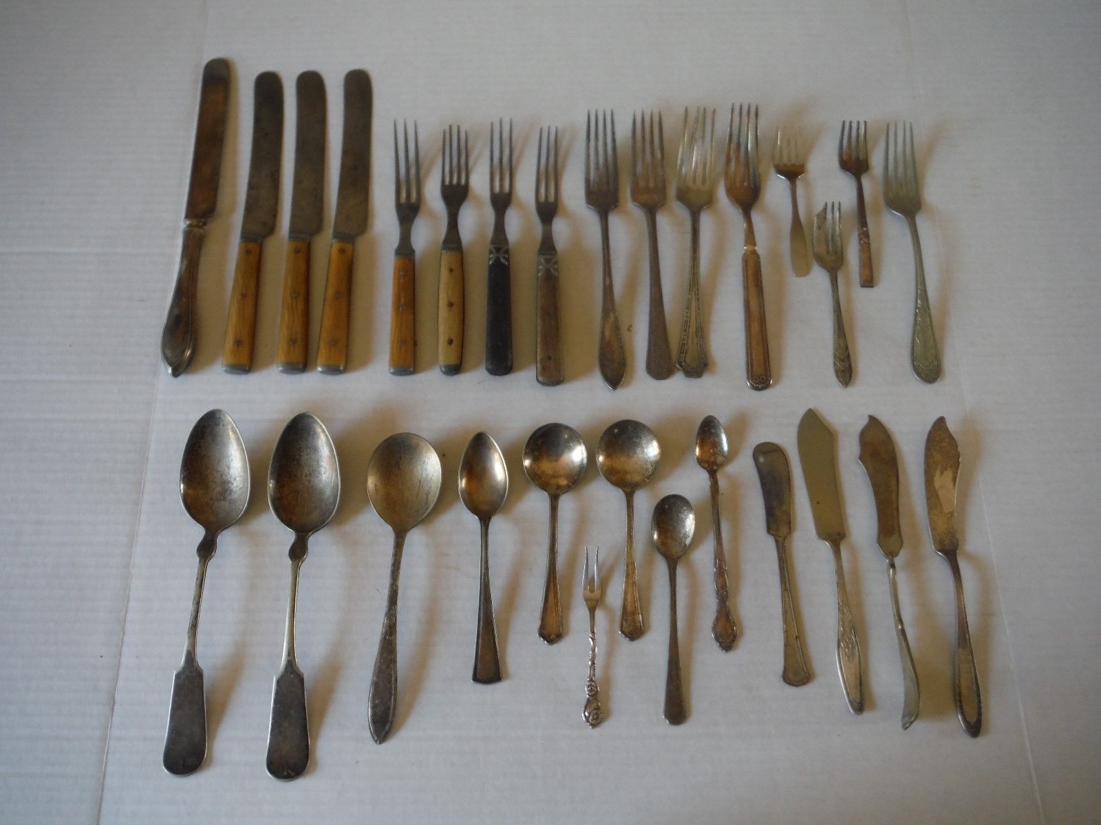 Title (ebay affiliate link): Antique Aged Mixed Lot of 29 Pieces of Tableware - Knifes - Forks - Spoons