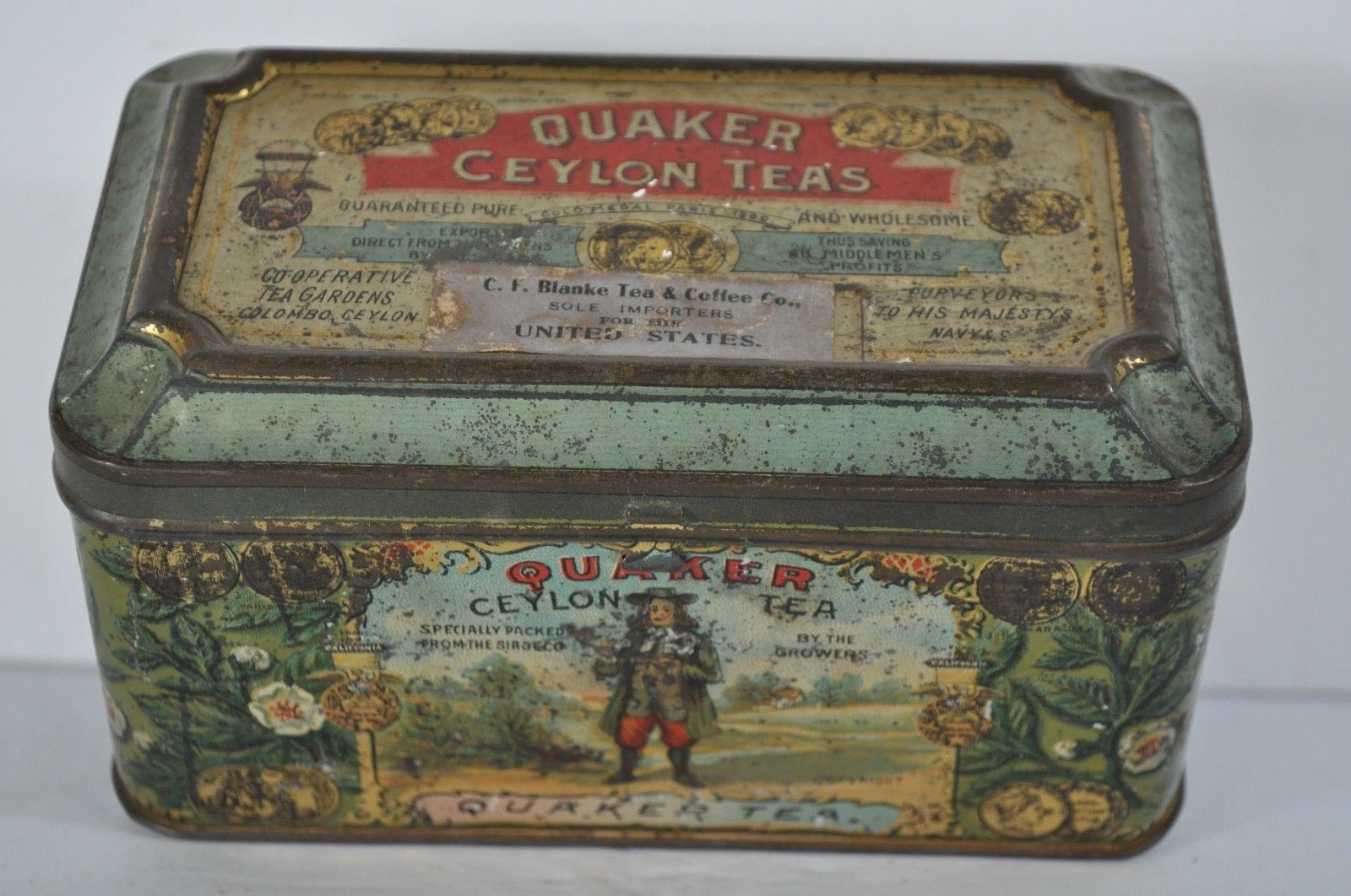 Title (ebay affiliate link): ANTIQUE QUAKER TEA TIN BLANKE TEA AND COFFEE CO GREAT GRAPHICS ADVERTISING OLD