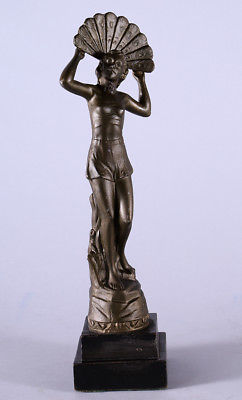 Antique Art Deco Fan Dancer Figural Metal Decorative Statue C. 1920 Sculpture NR
