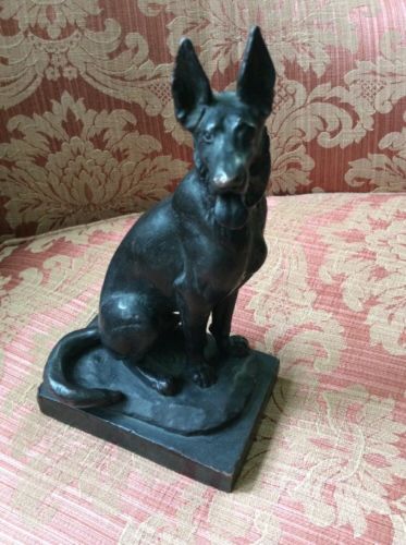 Vintage Bronze Clad Figurine PAUL HERZEL Signed German Shepherd