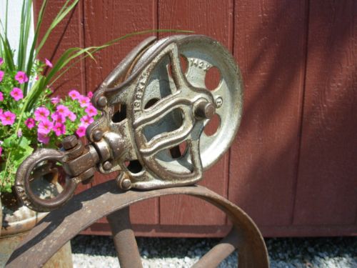 Title (ebay affiliate link): LARGE VINTAGE UNUSUAL CAST IRON FARM BARN HAY TROLLEY DROP PULLEY 138XL 138XR