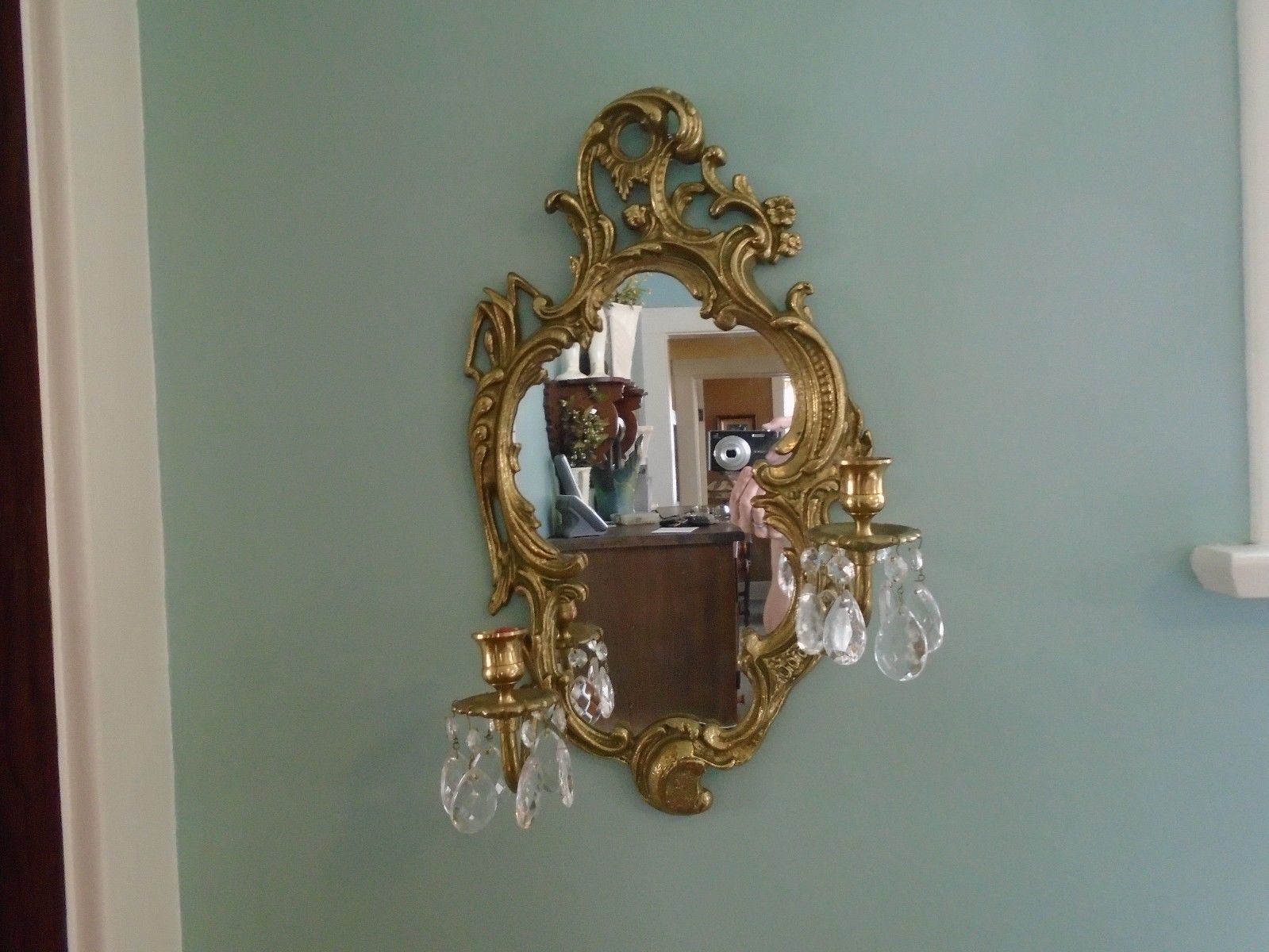 Title (ebay affiliate link): VINTAGE HEAVY BRASS MIRROR CRYSTAL PRISMS DOUBLE CANDLE HOLDER HOLLYWOOD REGENCY