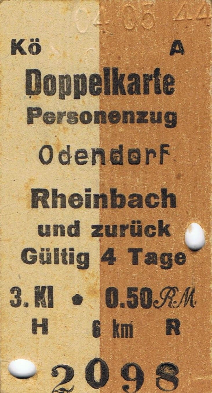 Railway tickets Germany Odendorf to Rheinbach third class return 1944