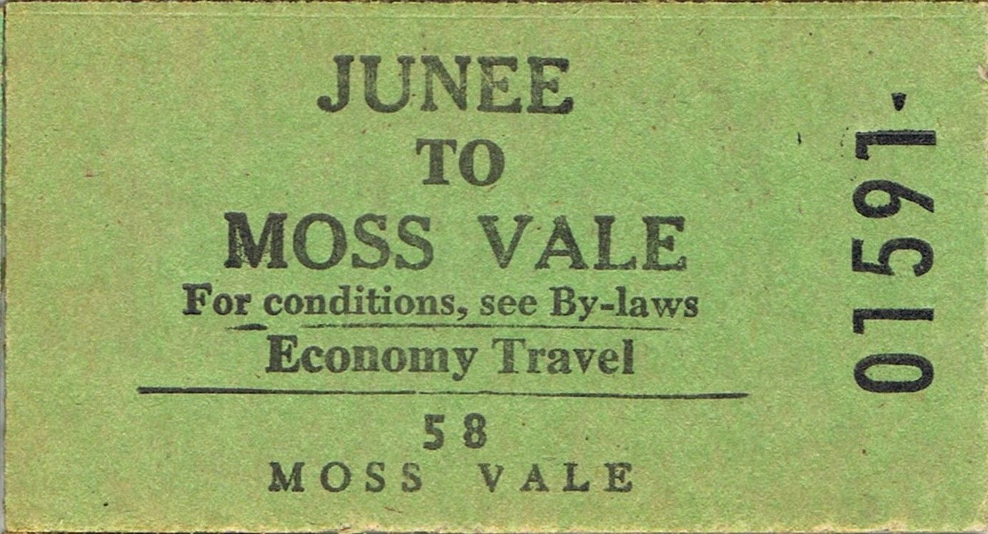 Railway tickets NSW SRA Junee to Moss Vale unused economy single