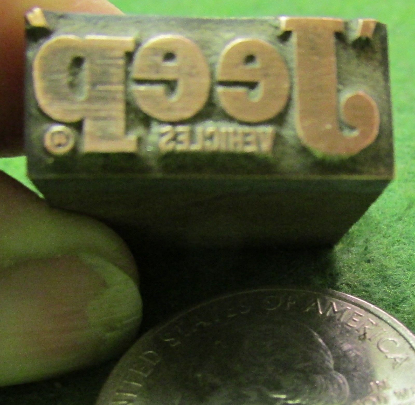 Old Wooden Type / Print Block Adv. Logo " Jeep " Brass Face