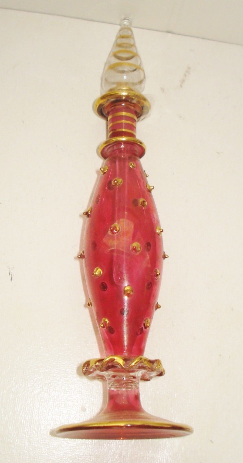 VINTAGE RUBY RED GLASS PERFUME BOTTLE BEAUTIFUL GOLD DESIGN NR