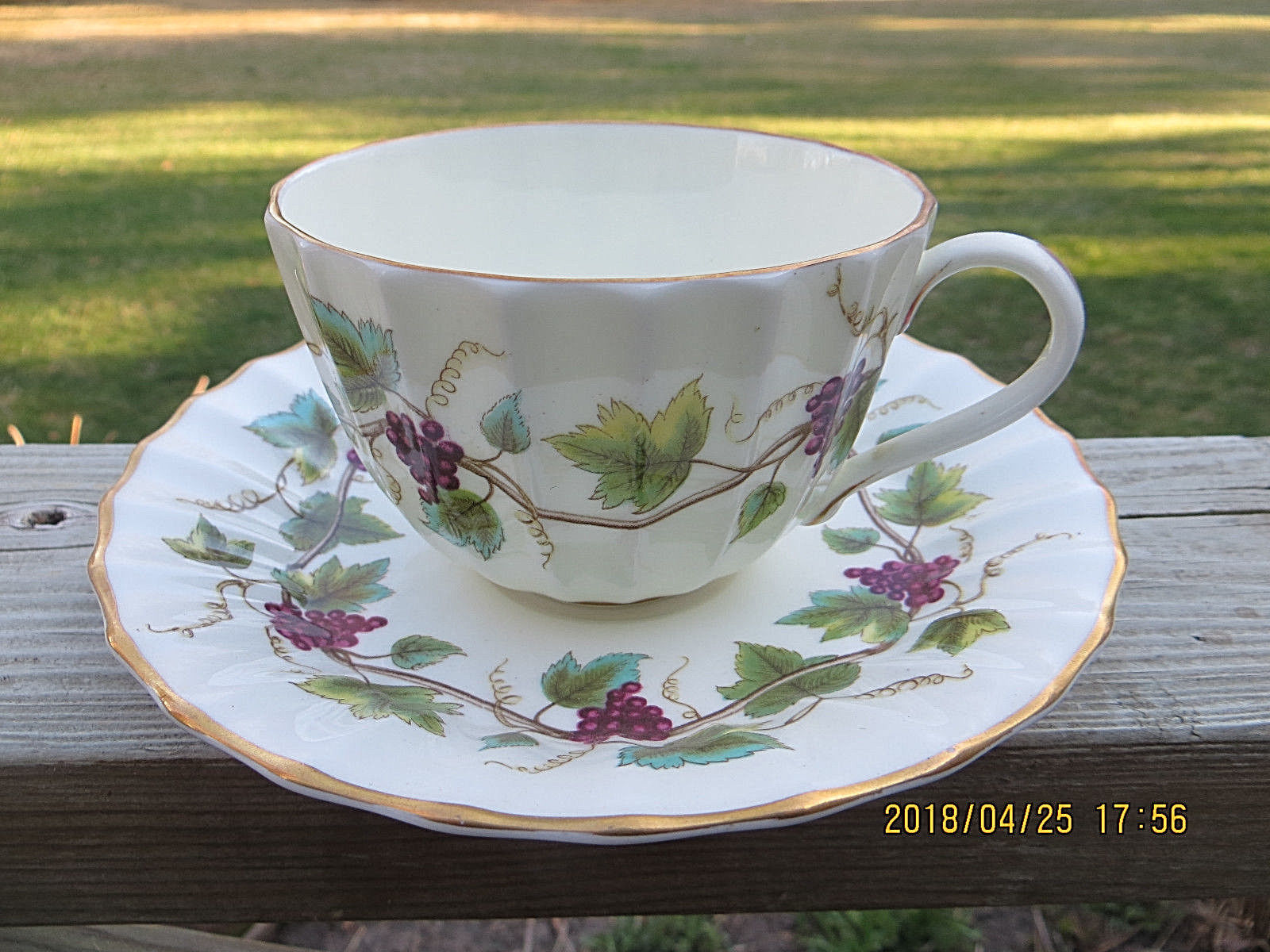 Title (ebay affiliate link): ROYAL WORCESTER TEA CUP AND SAUCER BACCHANAL BONE CHINA ENGLAND PURPLE GRAPES