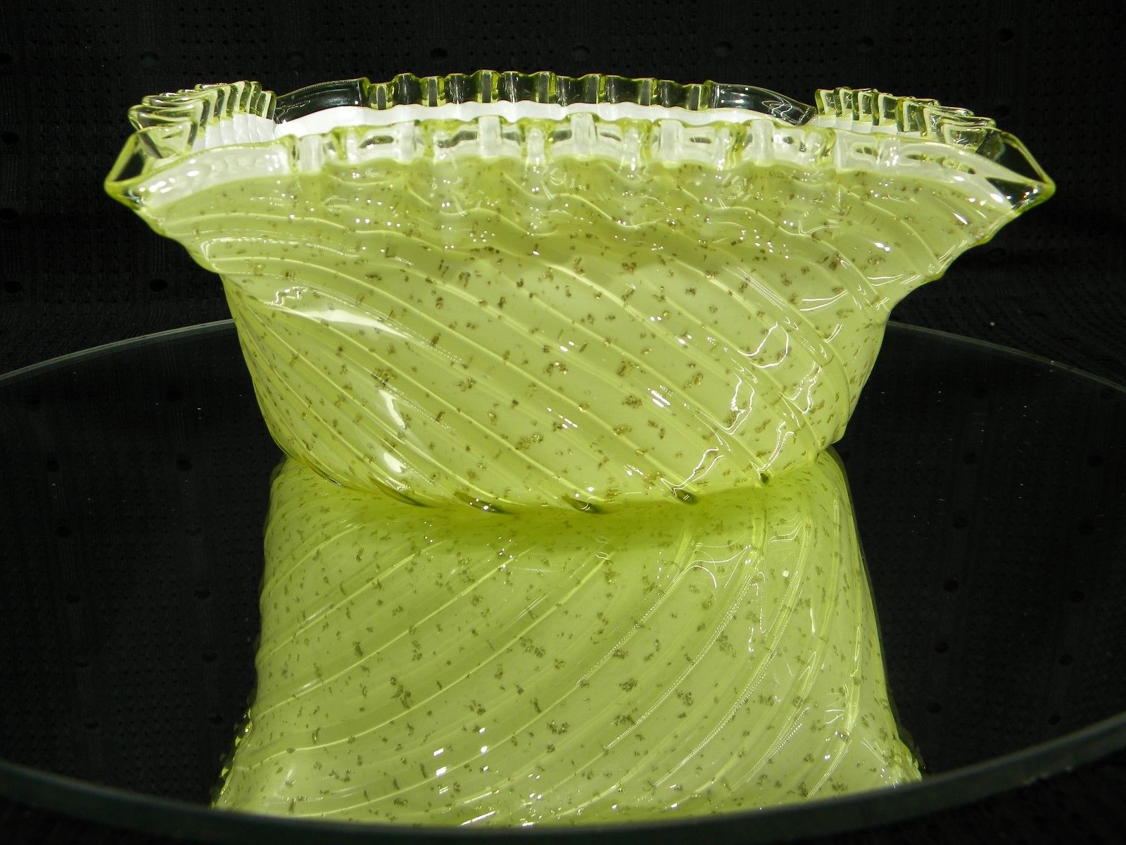 Title (ebay affiliate link): YELLOW OPALESCENT VICTORIAN BRIDES BASKET CASED GLASS SQUARE BOWL RUFFLED EDGE