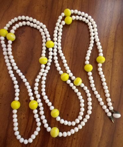 Title (ebay affiliate link): VTG JAPAN 60" LONG WHITE & LEMON YELLOW GUMBALL MILK GLASS BEAD NECKLACE FLAPPER