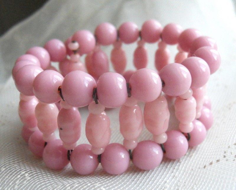 Title (ebay affiliate link): Gorgeous! Vintage PINK MILK GLASS BEADS Wide Coil Wrap BRACELET