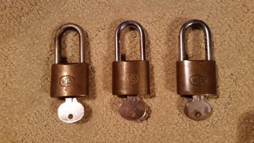 VTG Antique Lot 3 WB Padlocks with Keys