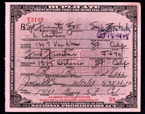 Title (ebay affiliate link): Prohibition Prescription Medicinal Liquor Vintage Pharmacy San Francisco CA Bar