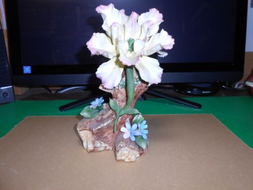 VINTAGE CAPODIMONTE FLOWER FIGURE ON TREE TRUNK