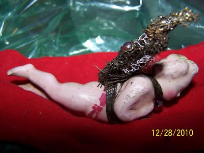 OLD WAX ANGEL ORNAMENT WITH FOIL & NETTING WINGS