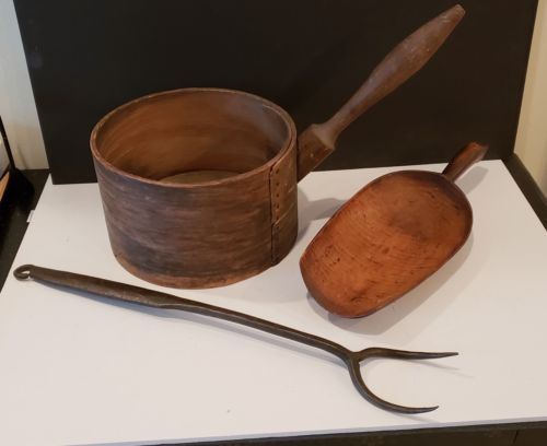 Title (ebay affiliate link): 3 Antique Primitive Farmhouse Kitchen Utensil Lot Meat Fork Hand Forged Scoops