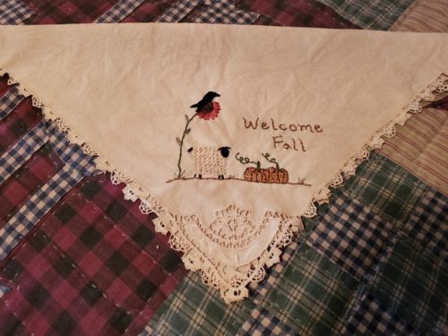 Title (ebay affiliate link): ~*Awesome~* Primitive "Welcome Fall" Hand Stitched Doily! Oh My!