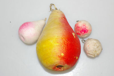 Lot Antique Spun Cotton PEAR APPLE Christmas Ornaments