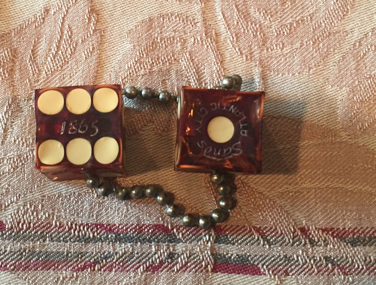 Title (ebay affiliate link): Pair Vintage ATLANTIC CITY SANDS CASINO Dice Drilled with key chain "1865"