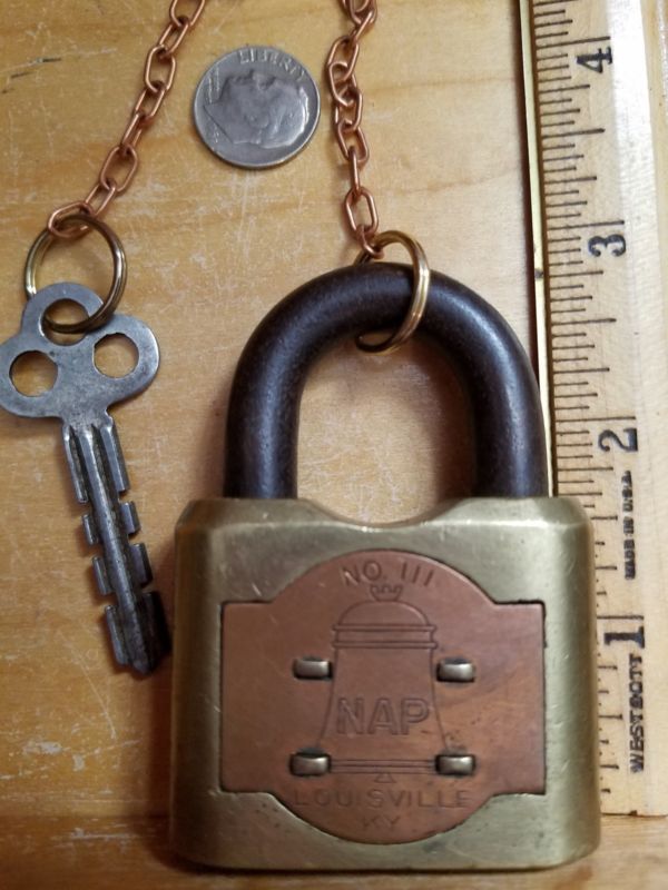 Title (ebay affiliate link): NAP No. 111, Louisville Ky padlock, brass, copper & steel, & key