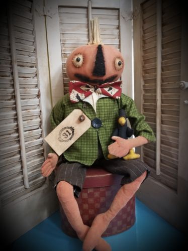 Title (ebay affiliate link): Primitive Halloween Pumpkin Doll w/ Crow ~Real Dried Pumpkin Stem ~