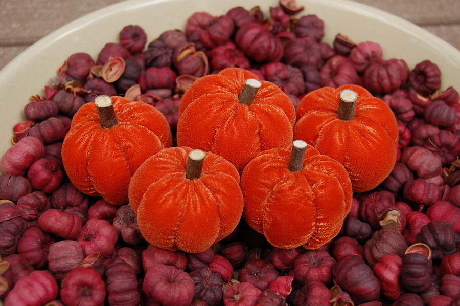 Title (ebay affiliate link): Primitive Fall Halloween Orange Micro Velvet Small Pumpkin Ornies, 5