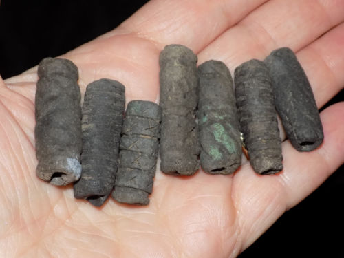 Pre-Columbian Clay Tubular Mayan Beads, Incised Lines, Set of 7