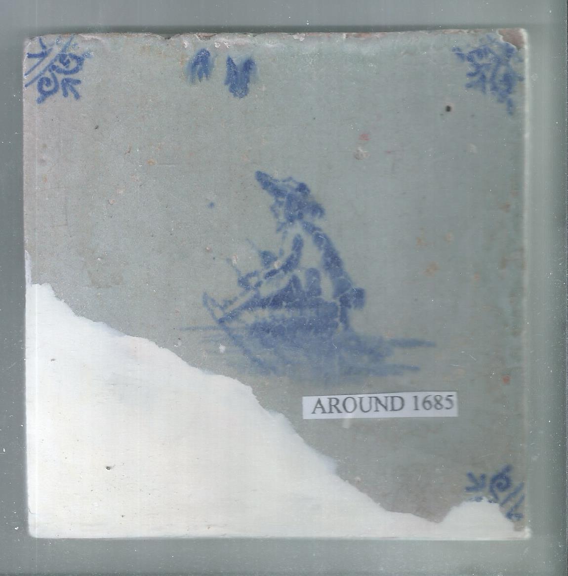 ANTIQUE HOLLAND DELFT SLEDGE RIDER TILE AROUND 1685