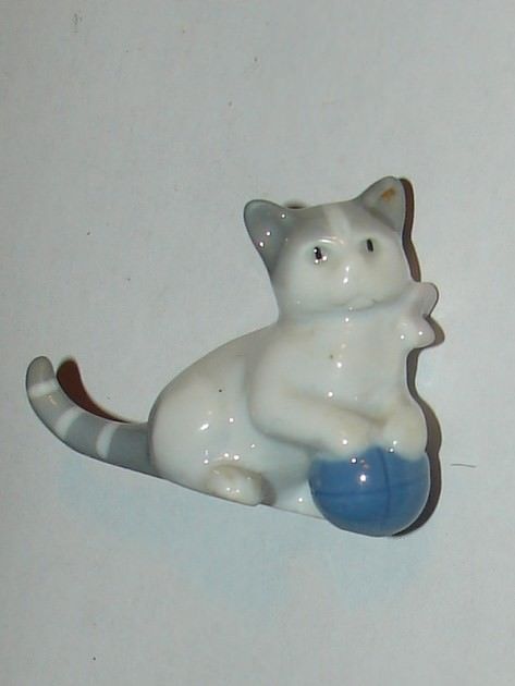 Vintage Metzler Ortloff Germany Porcelain Kitten w/ Ball White Gray Figurine #4