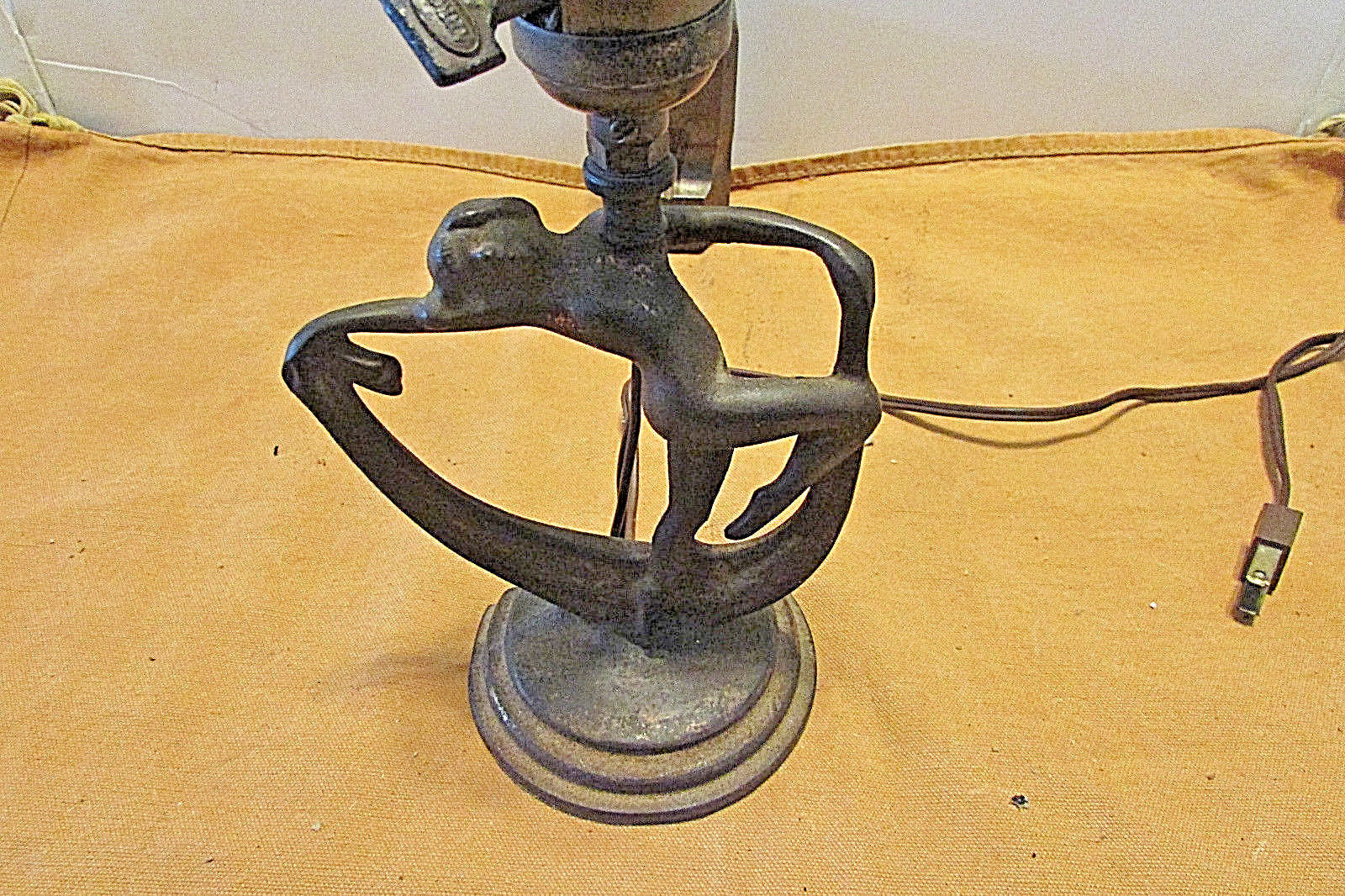AN ART DECO CAST IRON LAMP BASE WITH NUDE