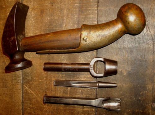Title (ebay affiliate link): VINTAGE BLACKSMITH, COBBLERS HAMMER & PINKING CHISEL, HOLE PUNCHES TOOL LOT