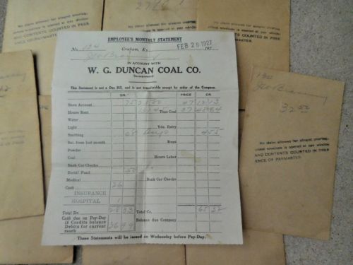 Title (ebay affiliate link): Eight 1927 Coal miner''s pay packets from Duncan Coal Co. Graham, KY