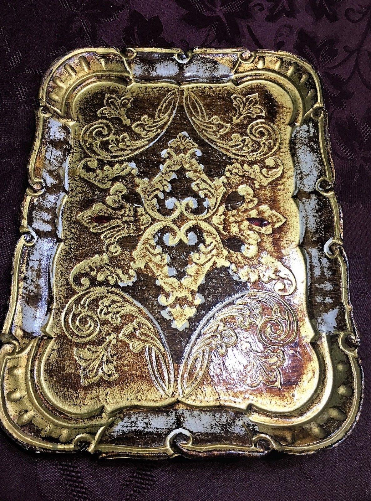 Vintage Italian Florentine Gilded Tray, 10" x 17,5", Italian