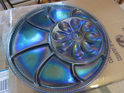 (4C) vintage  oyster plate   carnival  glass 8 slots  for oysters