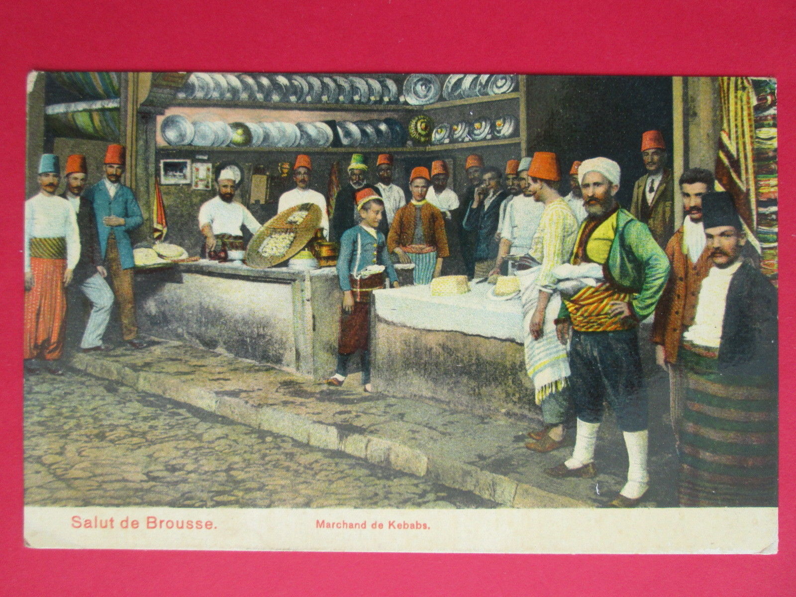 TURKEY BROUSSE 1914 postcard kebab merchant BURSA TURQUIE marchand de kebabs