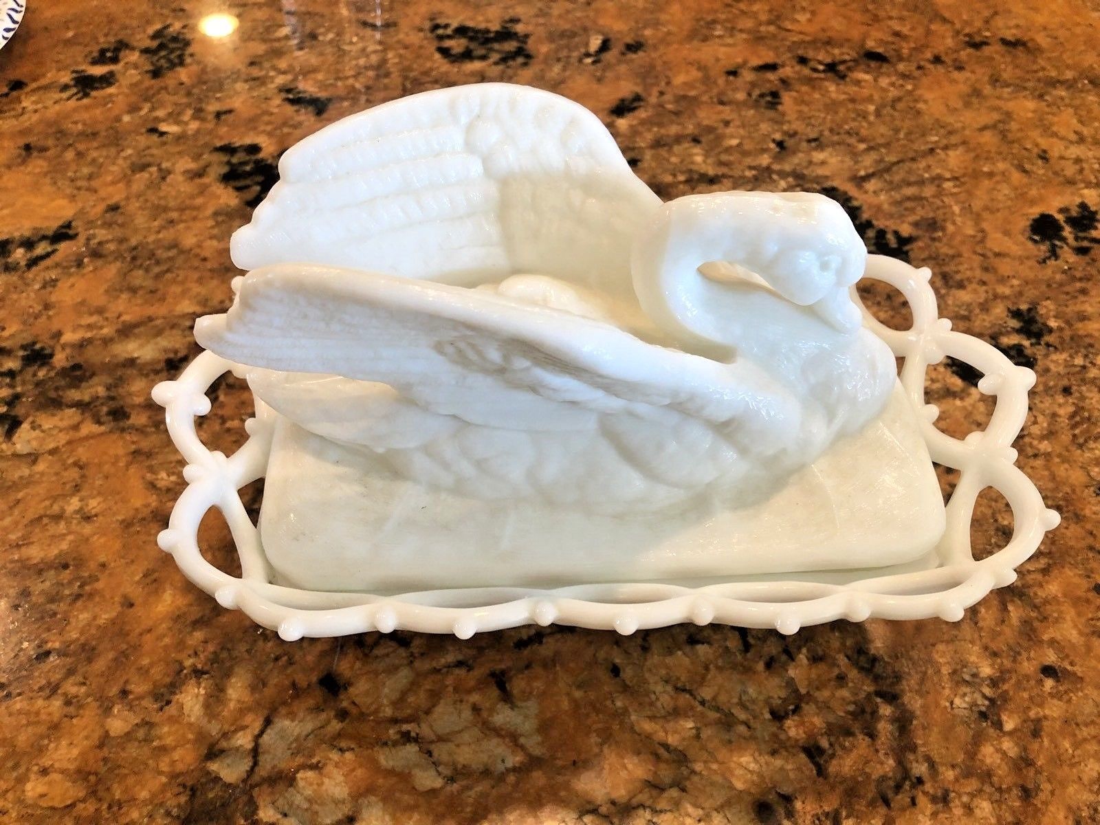 Title (ebay affiliate link): Westmoreland Glass Covered Swan Milk Glass Candy Dish Lacy