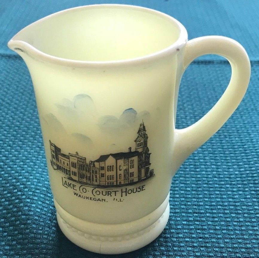 Title (ebay affiliate link): VINTAGE MILK GLASS CREAMER LAKE COUNTY COURTHOUSE WAUKEGAN, IL