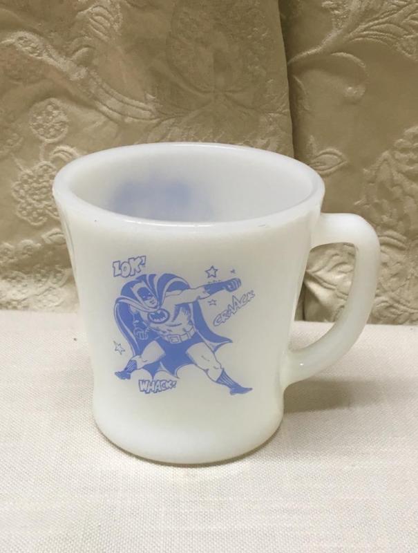 VINTAGE BATMAN FIRE KING COFFEE MUG CUP BLUE & WHITE MILK GLASS ANCHOR HOCKING