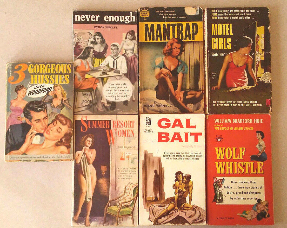 Title (ebay affiliate link): 7 Vintage Sleaze paperback Lot Mantrap, Motel Girls, Gal Bait, more