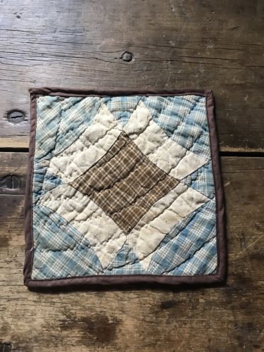 Title (ebay affiliate link): Early Antique Blue Brown Homespun Linsey Woolsey Quilt Square Table Mat AAFA
