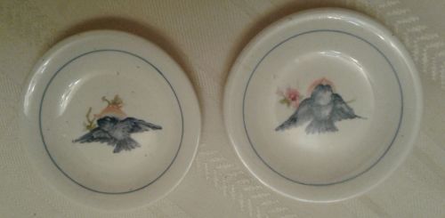 Title (ebay affiliate link): Set of 2 Sweet Blue Birds Bluebirds Antique 3-1/16"Butter Pats Small Doll Plates
