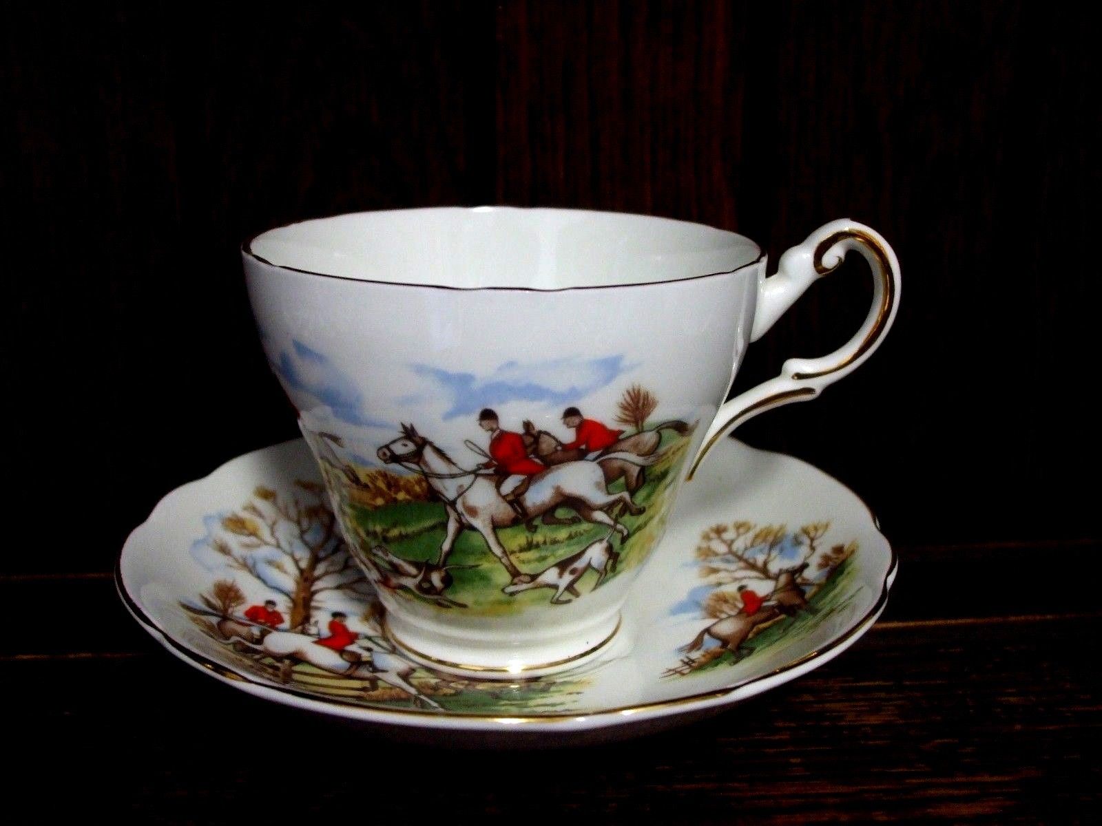 REGENCY TEA CUP & SAUCER FOX HUNT SCENE ENGLISH BONE CHINA