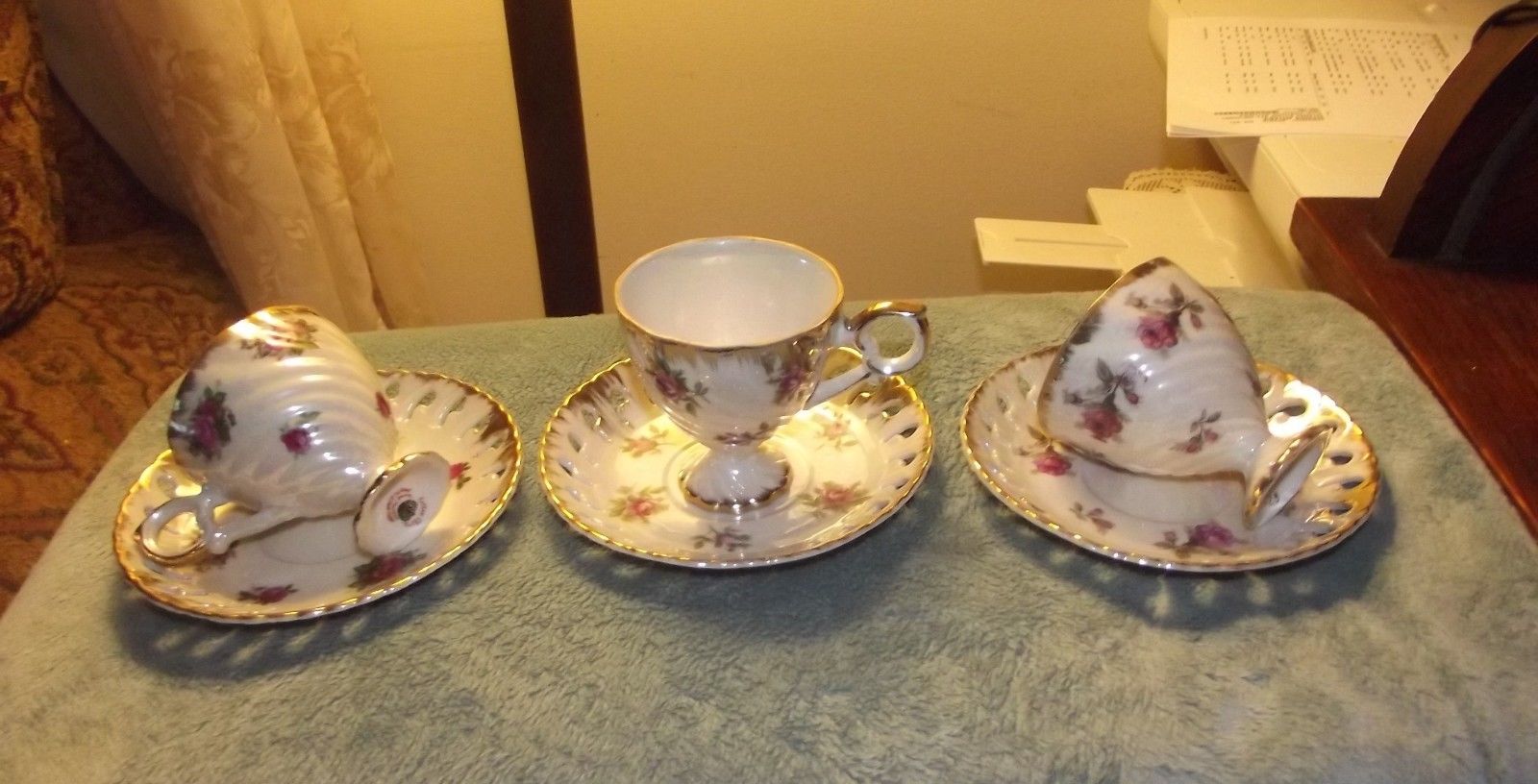 VINTAGE LEFTON 3 TEACUPS AND SAUCERS